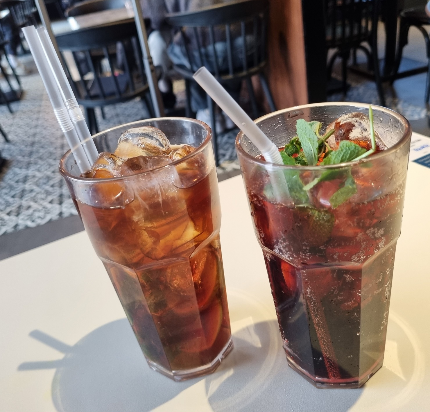 아이스티와 체리코코다. 최대한 탄산을 피하려고 했건만 체리코코는 탄산이 들어가 있었다.