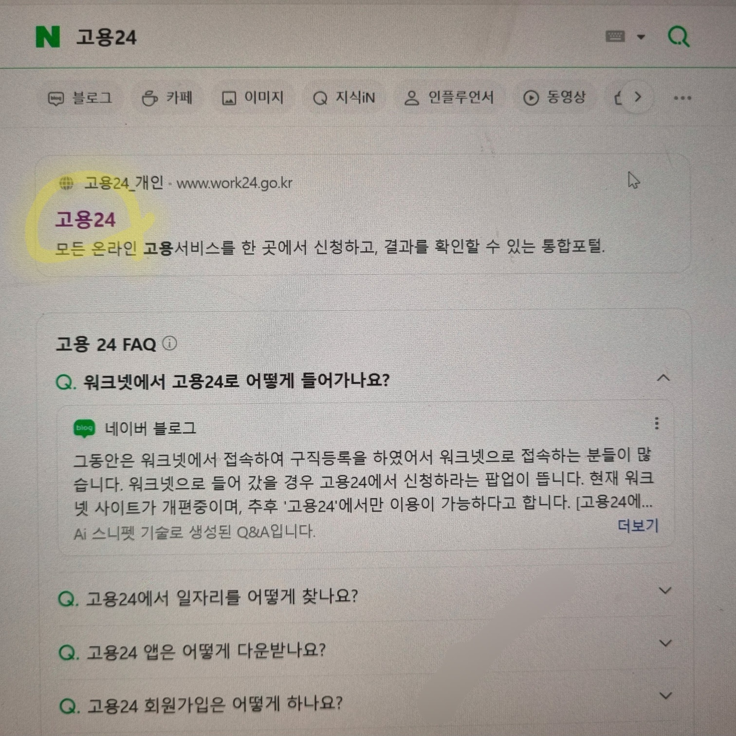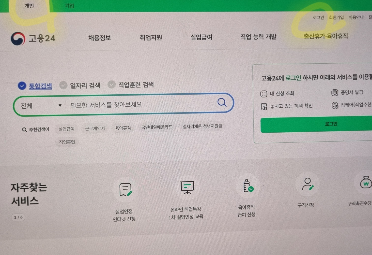 네이버에 <고용24>를 검색해서 <고용24> 홈페이지에 들어간다.