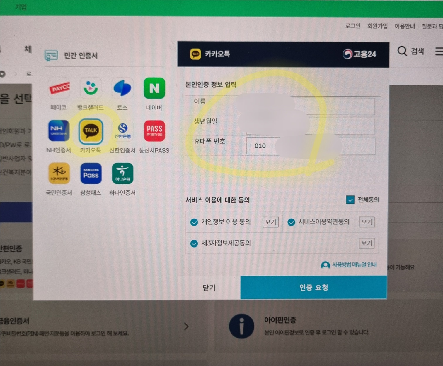 나는 간편한 <카카오톡 인증>을 이용한다.