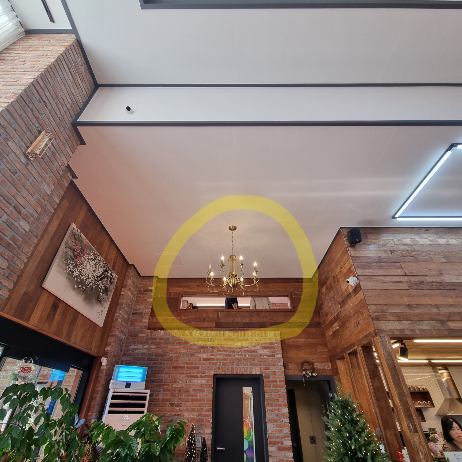 샹들리에와 카페 안/밖의 환경이 예쁘다.